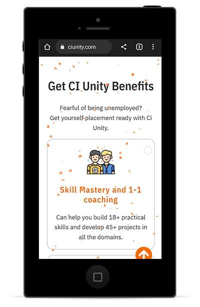 CIUNITY is a full-fledged flagship innovative education solution with an aim of overall career development for 1 year with a blended model of the offline innovation centre and online learning platform with an opportunity to build 18+ skills, 45+ projects, 1-1 mentoring, industrial training and 1-month internship